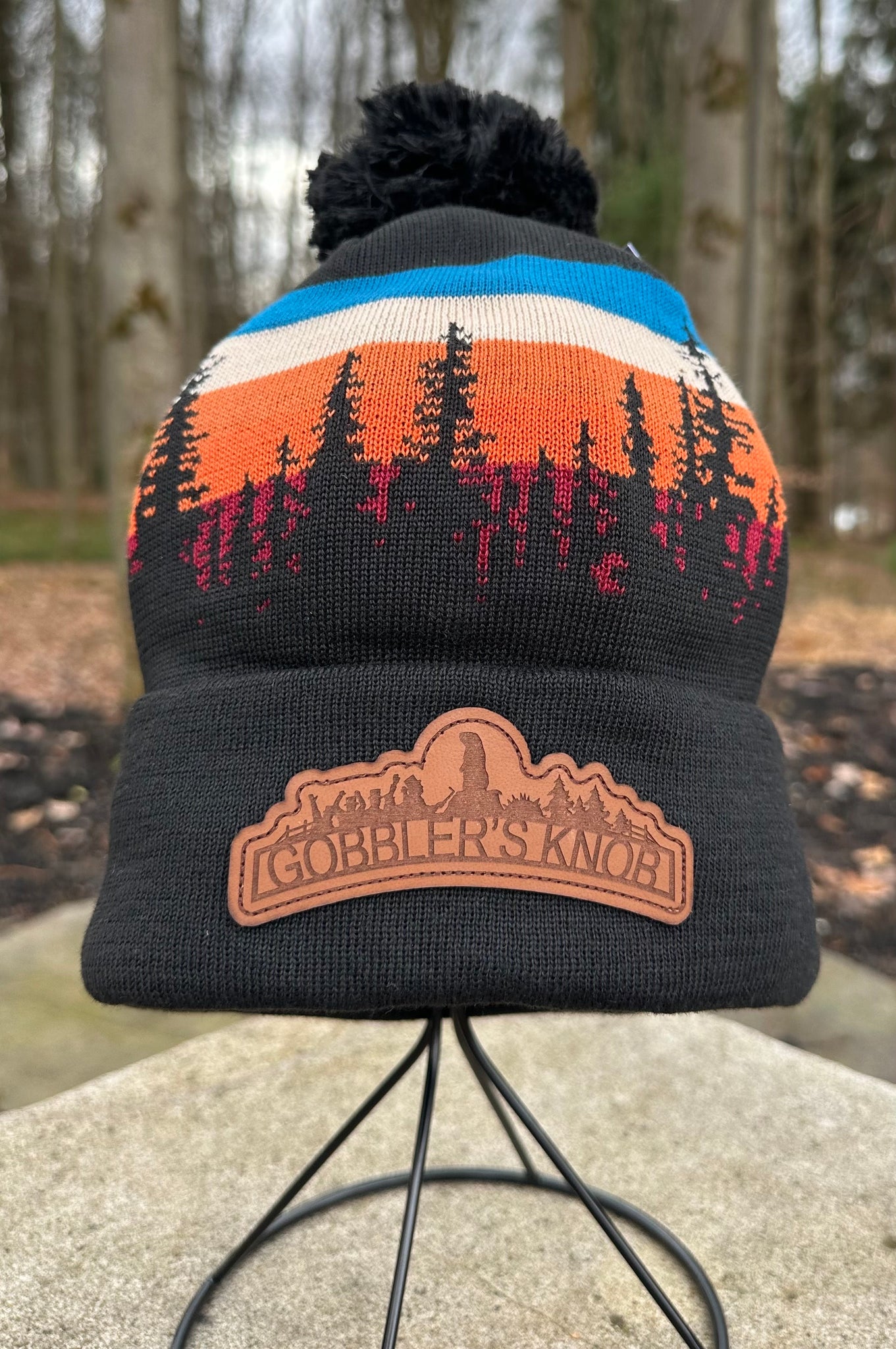 Stay warm in style with these premium Gobbler’s Knob beanies, each featuring a genuine leather patch and a unique, vibrant knit design. Available in a variety of outdoor-inspired patterns—from bold sunsets and mountain scenes to forest greens and soft pastel skies—these beanies offer a cozy fit with a fun pom-pom topper.